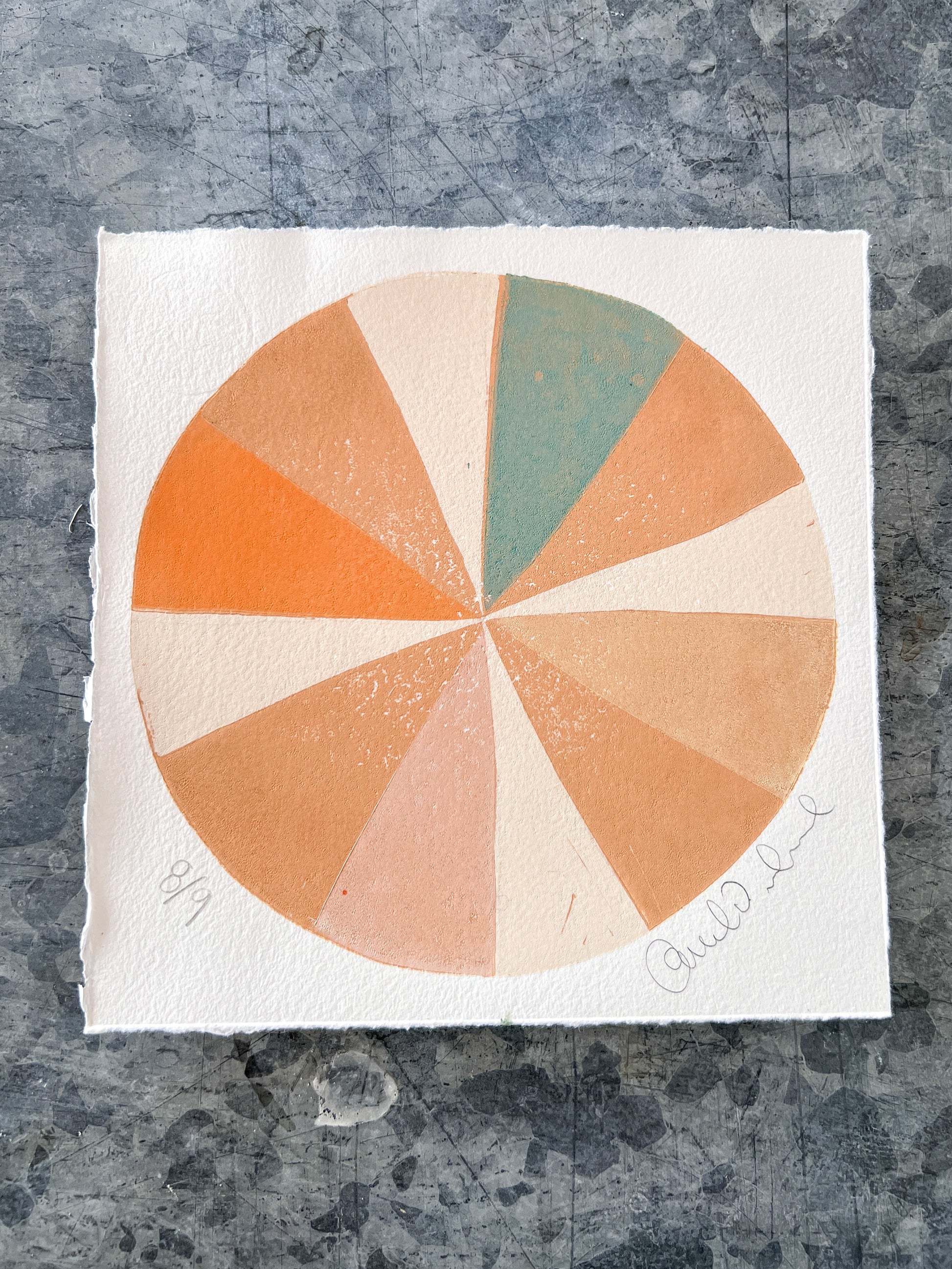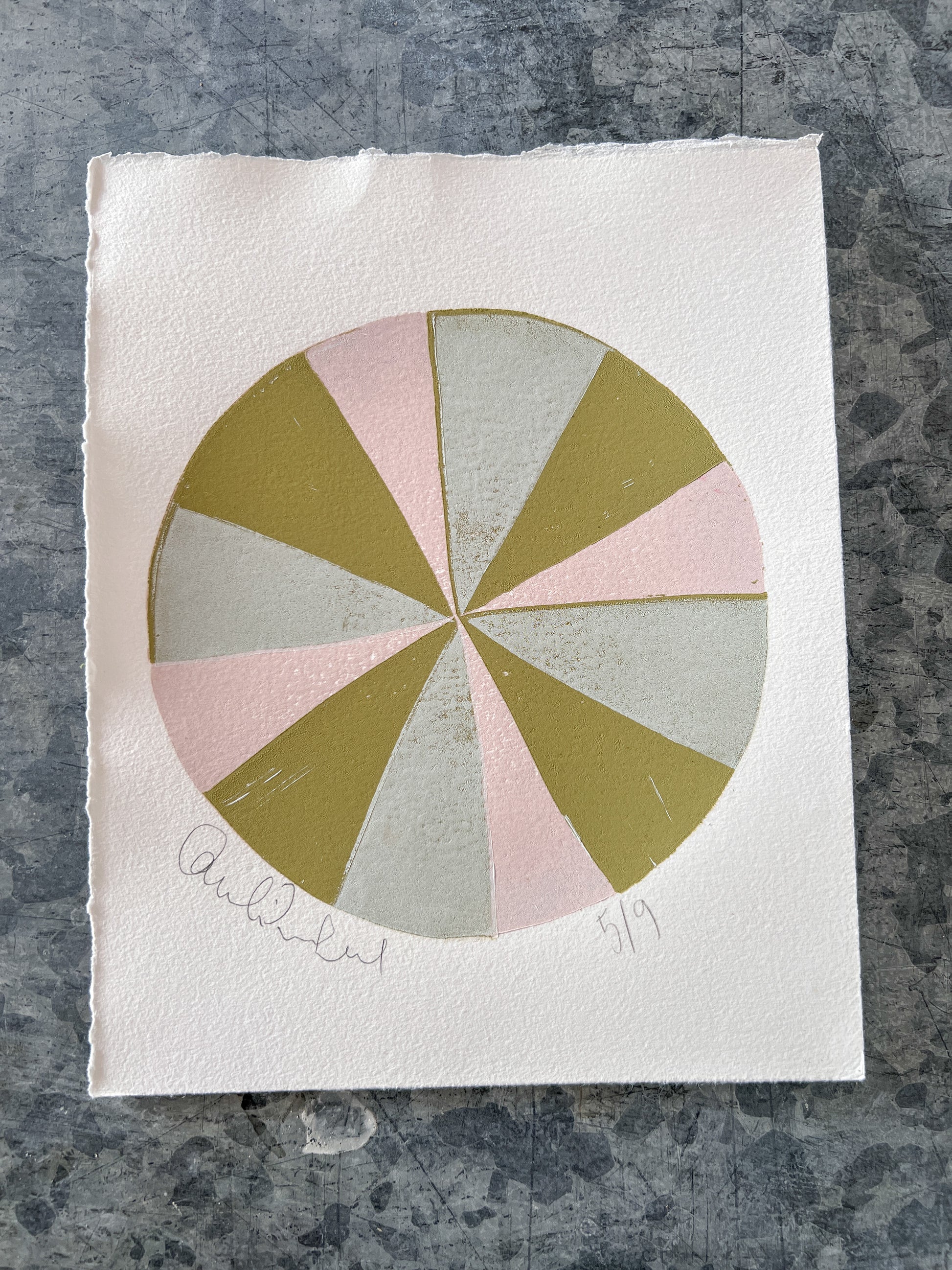 Hvert linoleumstryk er unikt. Reduktionstryk er i sig selv en uigenkaldelig proces. For hvert farvelag skæres pladen ned og kan ikke bruges igen. På den måde er samme motiv alligevel forskellige, og der findes kun én af hver.