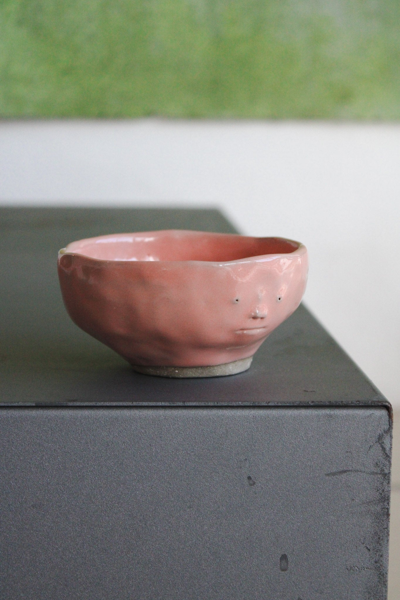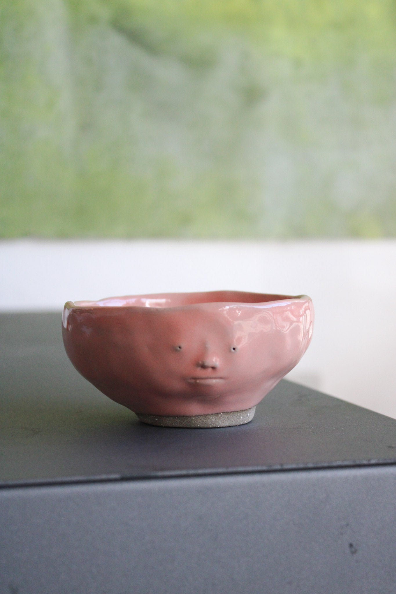 Håndlavet, lyserød ansigtskop i stentøj