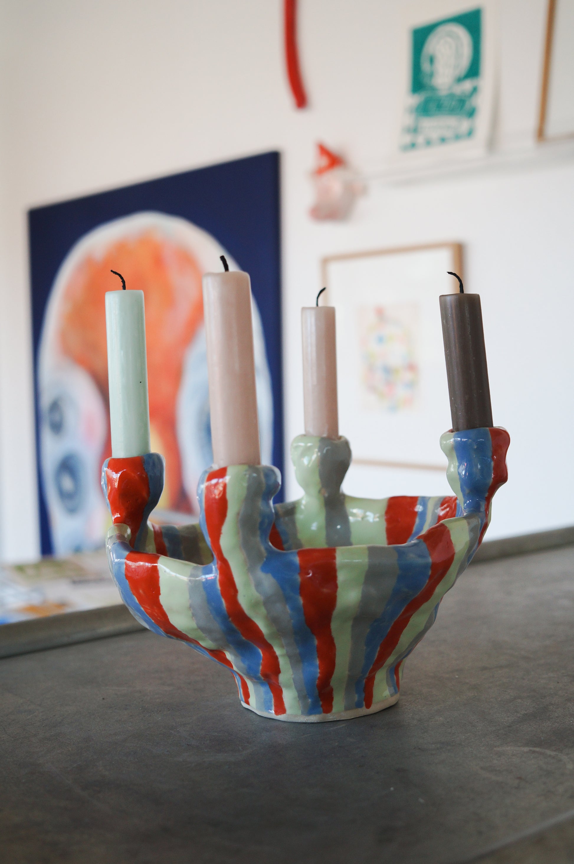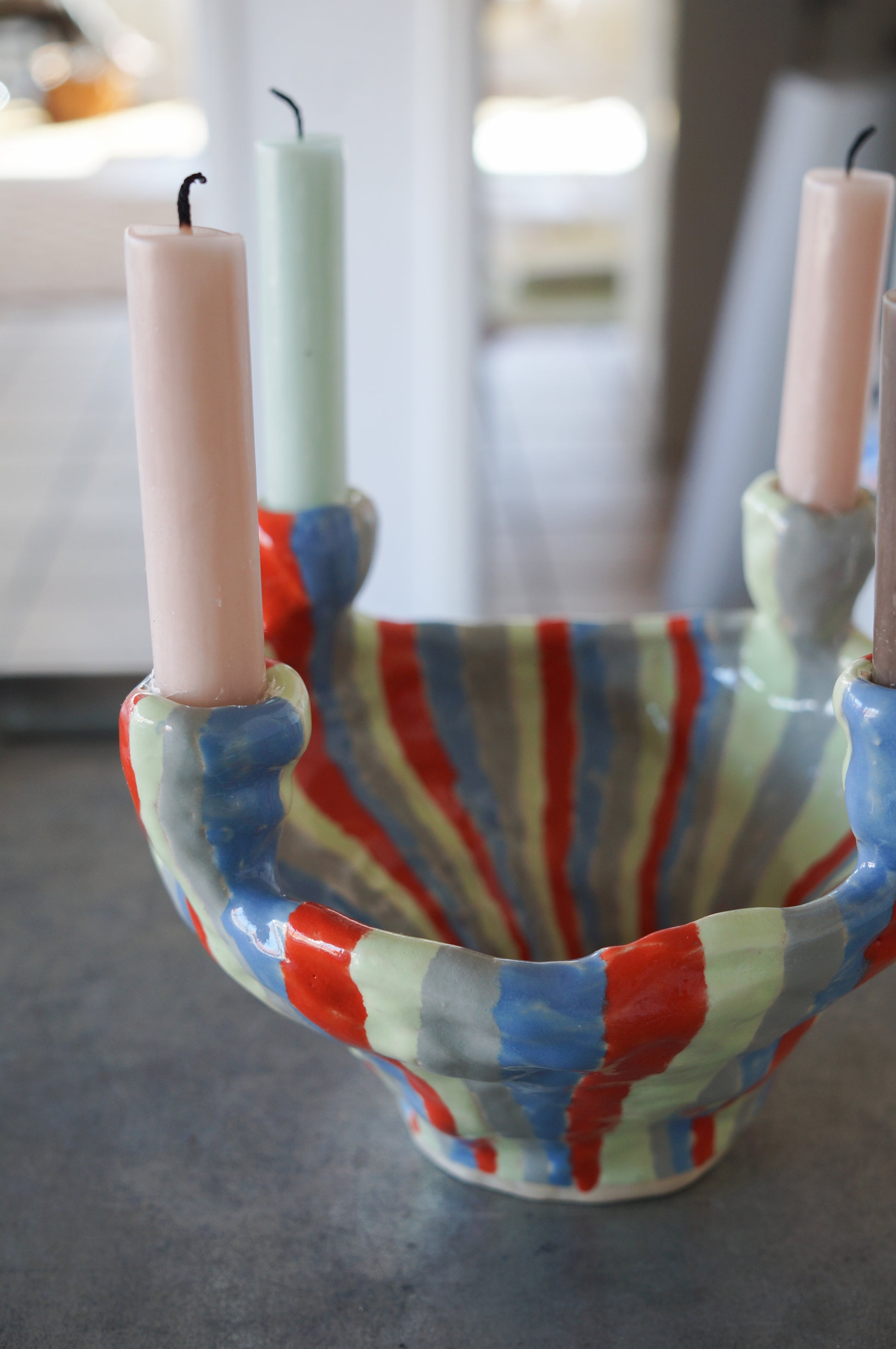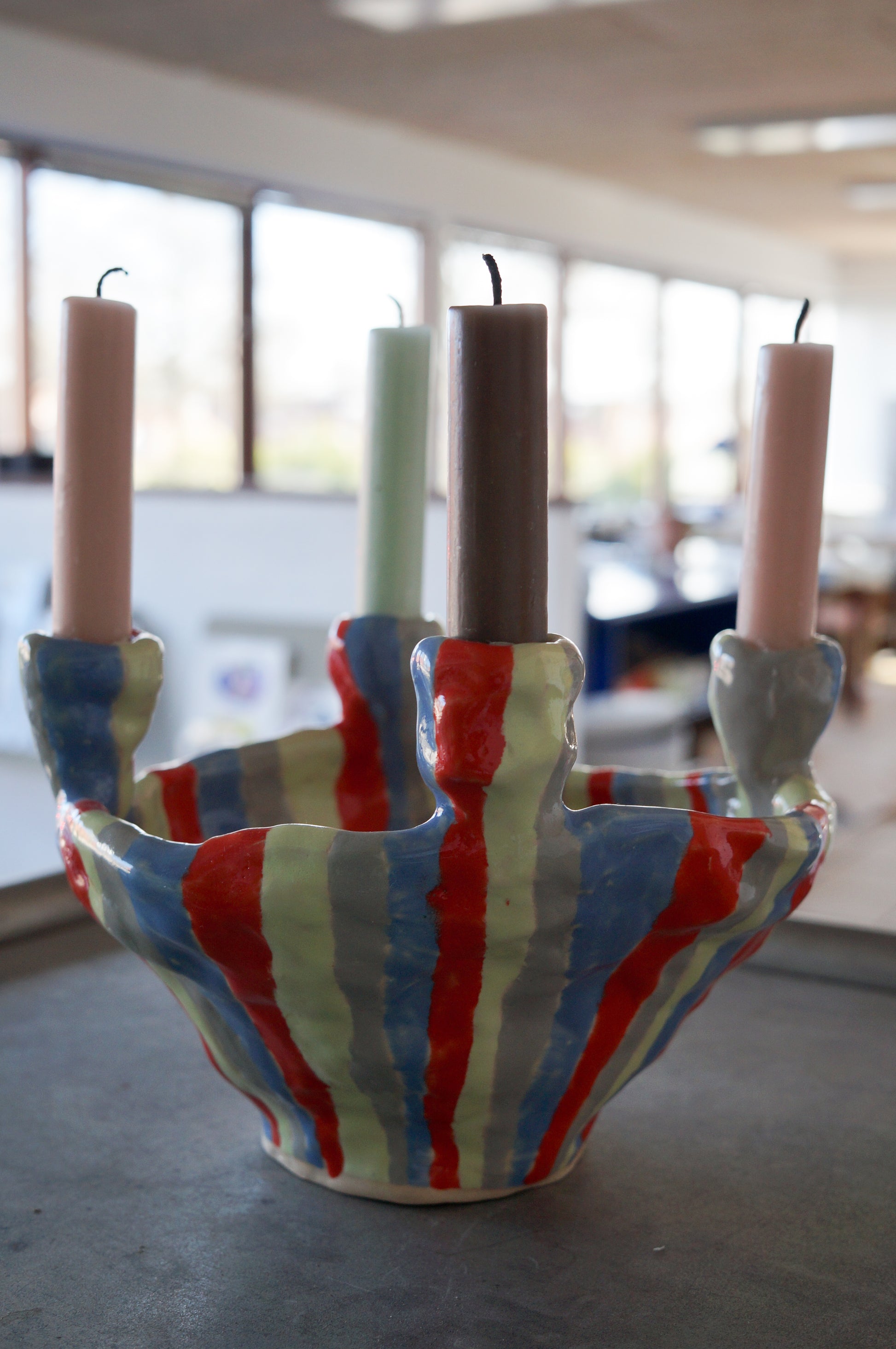 Stribet lysestage til fire lys