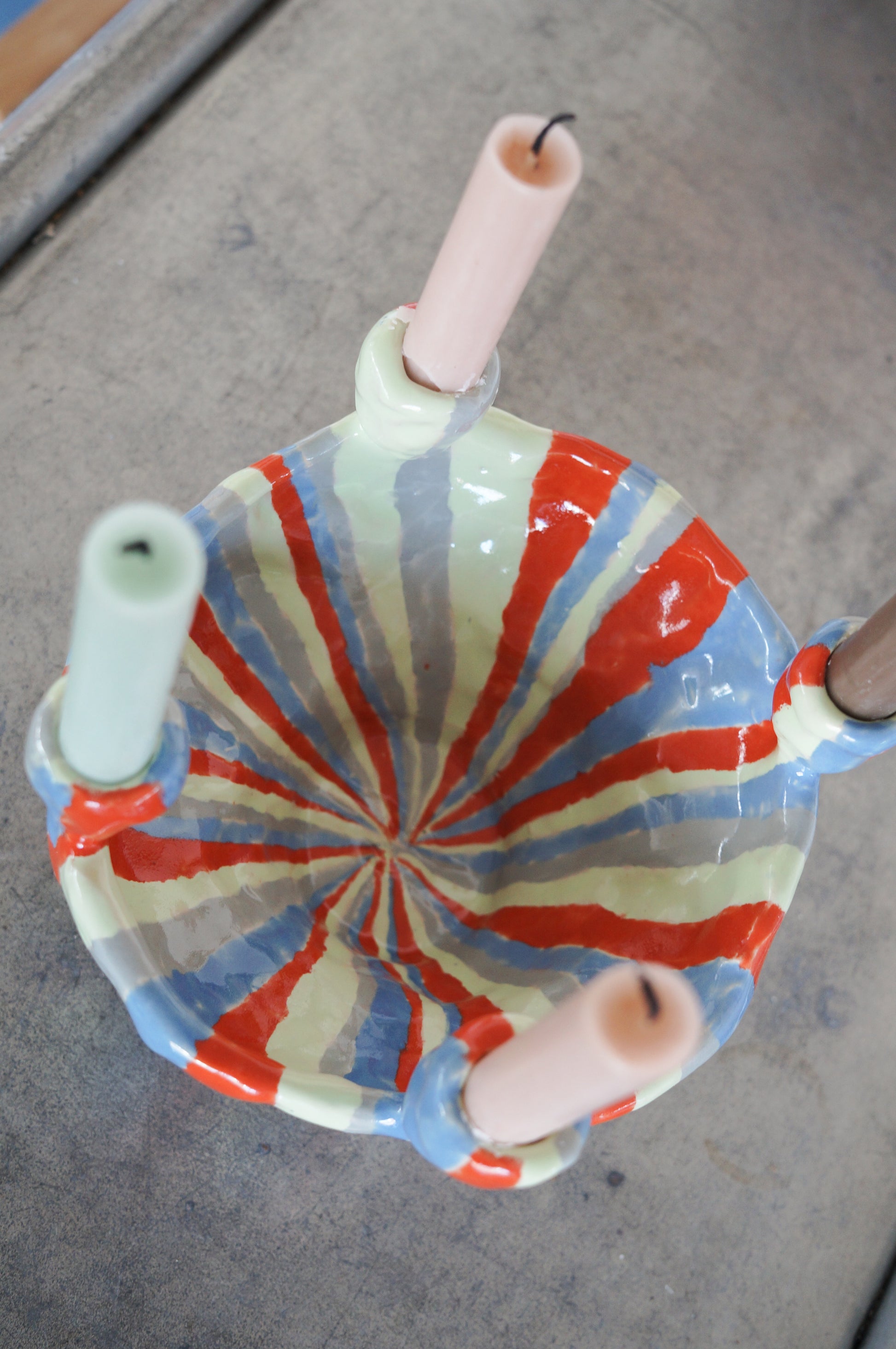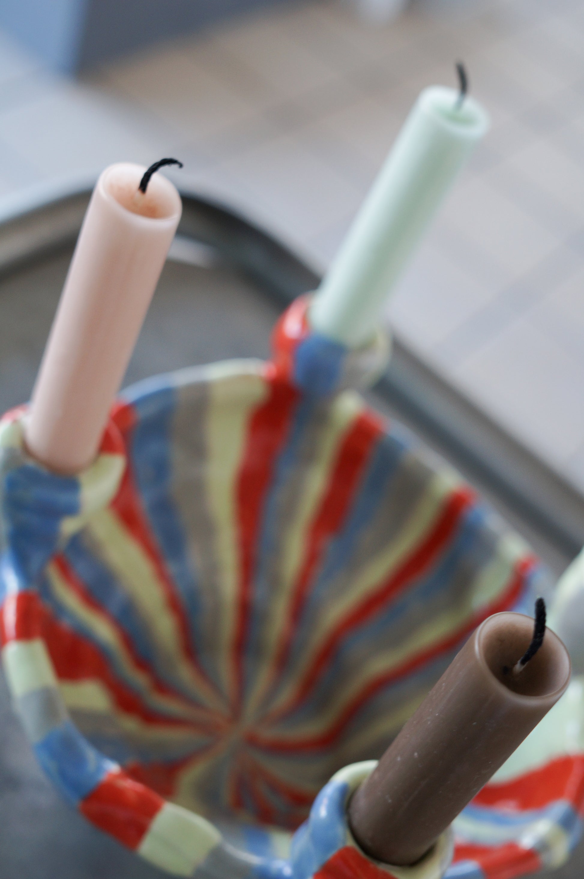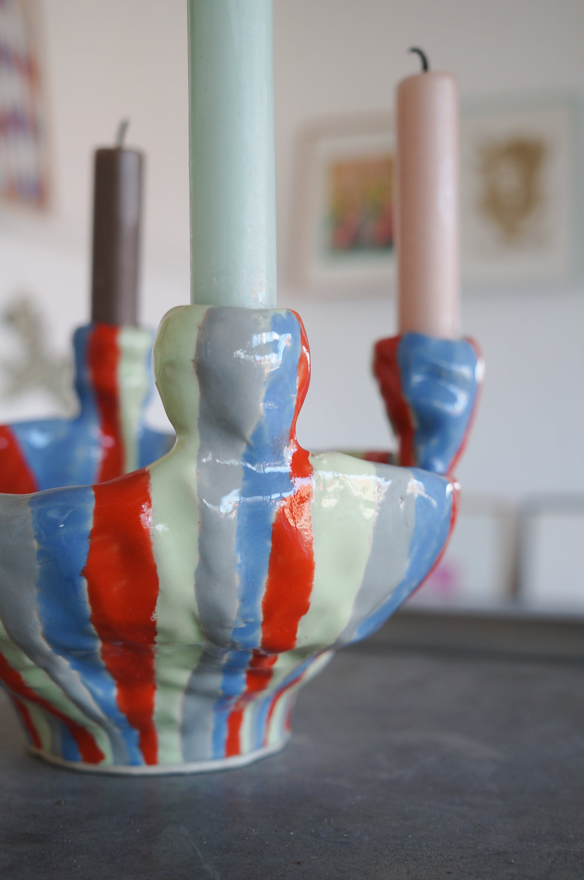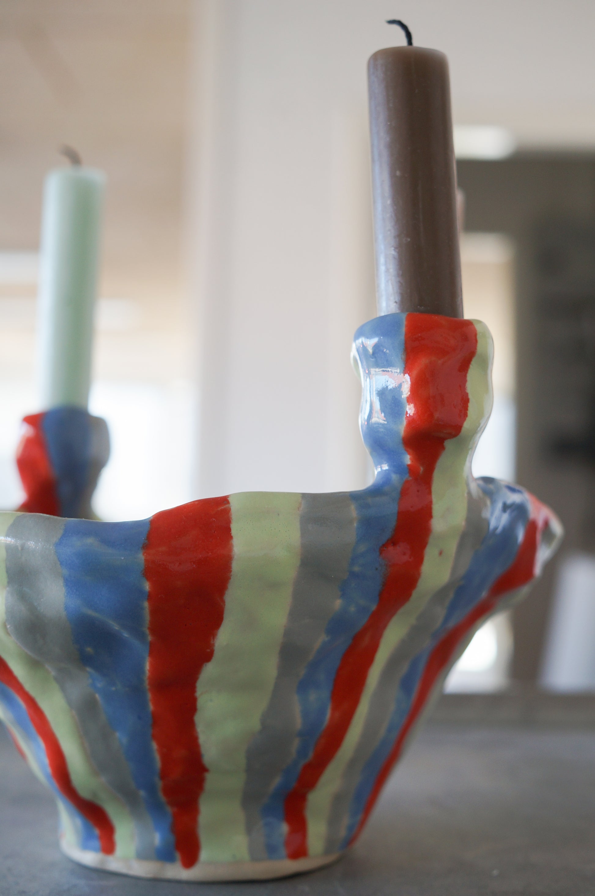 Stribet lysestage til fire lys